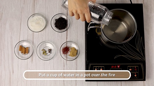 در یک قوری یا قابلمه کوچک، آب جوش را بریزید.