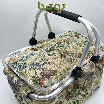 سبد پیک نیک های برزنتی در سایز متوسط با دسته آلومینیوم، دارای عایق حرارتی است که مانع از ورود و خروج گرما و سرمای مواد غذایی داخل آن می شود.