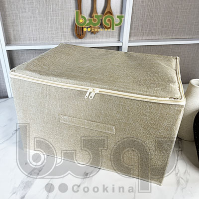 باکس لباس برزنتی با دوام و دربدار است. پارچه های به کار رفته جهت تولید این محصول برزنتی است و در برابر ساییدگی، پارگی و ورود حشرات مقاوم است. دارای یک دستگیره در جلوی باکس می باشد که حمل آن را آسان میکند.